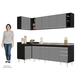 Material: MDP | Model: CP 45 | Cor: Preto | Origem: | ProductHeight: 202 cm | SupplierSimpleName: Armário de Cozinha Modulado de Canto Direito 5 Peças CP45 com Pia Inox PretoCinza - Lumil