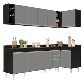 Model: CP 53 | Cor: PretoCinza | Material: MDP | Origem: | SupplierSimpleName: Armário de Cozinha Modulado de Canto Esquerdo 5 Peças CP53 Balcão com Tampo PretoCinza - Lumil | ProductHeight: 202 cm