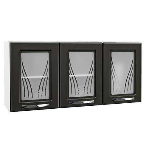 Armário Aéreo p/ Cozinha Star New c/ 3 Portas c/Vidro 120cm Branco/Preto - Telasul Marca: Telasul