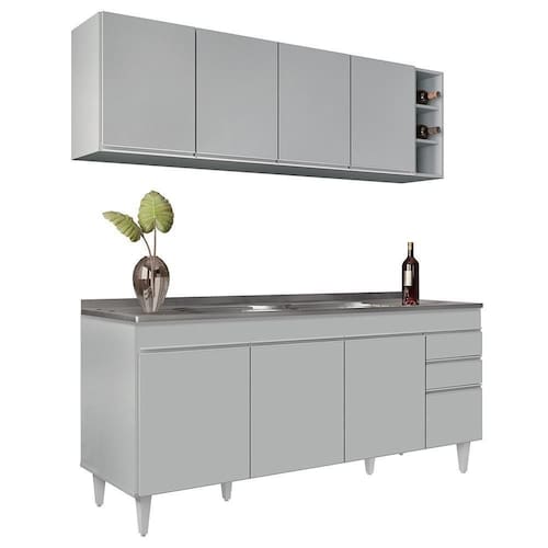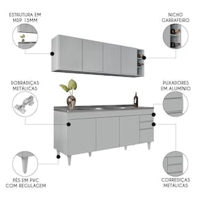 A funcionalidade realmente é a alma de uma cozinha moderna, e o Armário de Cozinha Nevada e Balcão Gabinete 180cm Com Pia Dallas Cinza Claro, da Lumil parece ser a peça central perfeita para quem busca estilo e organização.