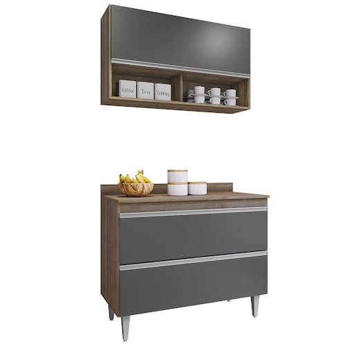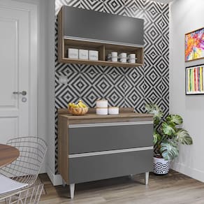 O Armário de Cozinha Nichos CP01 e Tampo 100cm Z34 Freijó/Grafite, da Mpozenato se destaca por ser uma peça que combina perfeitamente estilo e funcionalidade.