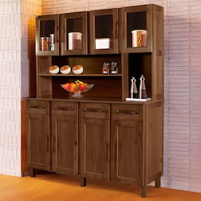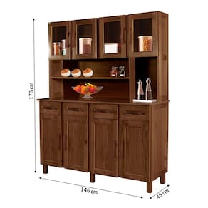O(a) Armário de Cozinha Noruega Madeira Maciça 8 Portas 4 Gavetas com Vidro Imbuia Naturall - Pnr Móveis é produzido em Pinus e HDF na escala de brilho Semi-Brilho, e possui um grau de dificuldade de montagem: Médio.