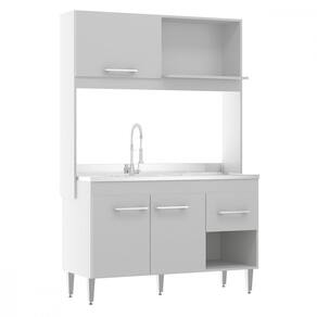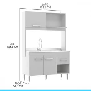 Características: Produzida em MDP de 12 mm Acabamento UV Gavetas com Corrediça Metálica Portas com Dobradiça Metálica Porta Basculante com Articulador Puxadores Alça em ABS Pés com Reguladores em ABS Pia e Torneira NÃO acompanham o Armário