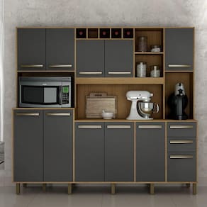 O Armário Petra da Valdemóveis é super compacto e cabe em qualquer cozinha, composto por 11 portas e 2 gavetas, com puxadores em eps cromado, pés em eps reguláveis e corrediças telescópicas. Montado, possui 200cm de altura x 218cm de largura x 45cm de comprimento. Montagem não inclusa. Recomendamos que a limpeza seja feita por um pano umedecido. Garantia de até 90 dias por defeito de fabricação. Dimensões: Altura; 200 cm Largura; 218 cm Profundidade; 45 cm Peso; 109 Kg Características: Produto Montado; Não Material da Gaveta; MDF/MDP Peso Máximo por Gaveta; 5 kg Necessita Montagem; Sim Material dos Pés; EPS Material do Puxador da Porta; EPS Cromado Material da Prateleira; MDF/MDP Material da Porta; MDF/MDP Sapatas Niveladoras; Não Escala de Brilho da Prateleira; Fosco Escala de Brilho da Porta; Fosco Escala de Brilho da Gaveta; Fosco Altura dos Pés; 15 cm Acabamento dos Pés; Cromado Possui Pés; 10 Tipo de Corrediça da Gaveta; Metálica Telescópica Acabamento da Porta; Pintura Texturizada UV Tipo de Dobradiça/Corrediça da Porta; Metálica Estilo; Moderno Tipo de Puxador da Porta; Externo Tipo de Puxador da Gaveta; Externo Acabamento da Prateleira; Pintura Texturizada UV Acabamento da Gaveta Pintura; Texturizada UV Linha ou Coleção; Petra Gaveta com Chave; Não Escala de Brilho; Fosco Material Principal; MDF/MDP Complexidade da Montagem; Alta: deve ser montado por um montador especializado Ambiente; Cozinha Acompanha Manual de Instalação; Sim Acabamento; Pintura UV Material do Puxador; EPS Cromado Medida do espaço para forno/micro-ondas (A x 43cm x 70cm x 45cm (A x L x P) Tipo de Porta; Bater Tipo de Módulo; Armário Tipo de Gaveta; Externa Suporta Até (kg); 50 kg Sistema de Montagem; Cavilhas e Parafusos Possui Toalheiro; Não Possui Rodízio; Não Possui Prateleiras; 06 Possui Portas; 11 Possui Porta Talheres; Não Possui Gavetas; 02 Peso Máximo por Prateleira; 5 kg Recomendações de Uso, Manutenção e Limpeza; Recomendamos que a limpeza seja feita apenas com pano umedecido