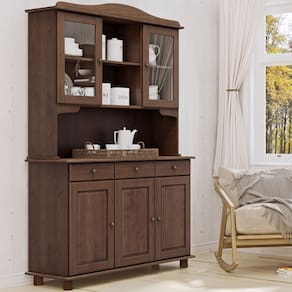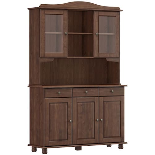 Fabricado em madeira maciça de alta resistência, esse armário de 5 portas (incluindo 2 portas com vidro estilo cristaleira) e 3 gavetas espaçosas é a solução perfeita para quem deseja praticidade sem perder o aconchego das cozinhas de sítio, chácaras ou casas de campo. Os pés torneados e os puxadores em tonalidade envelhecida conferem um ar vintage, enquanto as portas de vidro permitem exibir suas peças favoritas - como louças especiais ou coleções de vidros - com todo charme. Em outras palavras, essa combinação perfeita entre armário e cristaleira oferece armazenamento amplo, exposição elegante e durabilidade garantida.