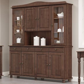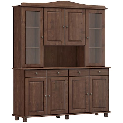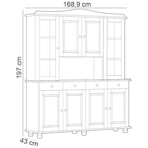 Fabricado em madeira maciça de altíssima qualidade, esse imponente armário com 8 portas (incluindo 2 portas com vidro estilo cristaleira) e 4 gavetas extras oferece um espaço generoso para organizar desde utensílios do dia a dia até coleções especiais de louças e alimentos. Os pés torneados robustos e os puxadores em tonalidade envelhecida reforçam o charme rústico, enquanto os vidros lisos nas portas criam um belo efeito de luz para exibir suas peças mais bonitas. O armário de cozinha rústico perfeito para cozinhas amplas, seja em casas de campo ou até mesmo na cidade, caso você goste de um ar vintage. Seja como for, o armário Lazuli transforma sua cozinha em um espaço digno de fazenda.