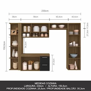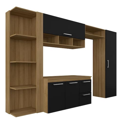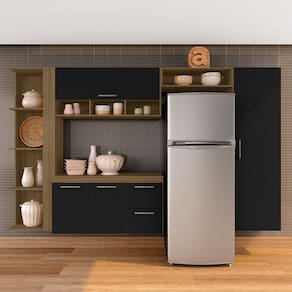 Detalhes Técnicos - MDP - Pintura em FF (Finish Foil) - 3 Portas Convencionais - 1 Porta Basculante - 2 Gavetas com Corrediças Metálicas - 6 Puxadores em Polietileno - 4 Prateleiras - 4 Nichos - Tonalidade: Boreal/Preto - Prateleiras e gaveta suportam até 5kg - Produto suspenso, não possui pés