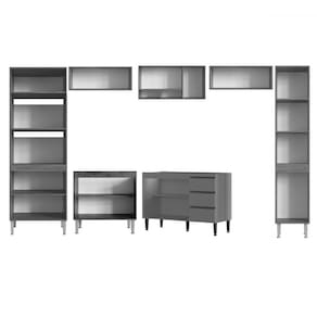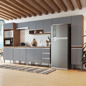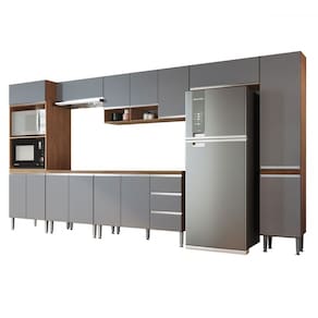 O(a) Armário de Cozinha Thalia 14 Portas 3 Gavetas Freijó/Cinza - Pnr Móveis é produzido em MDP na escala de brilho Semi-Brilho, e possui um grau de dificuldade de montagem: Médio.