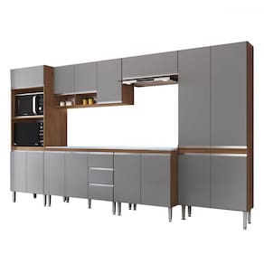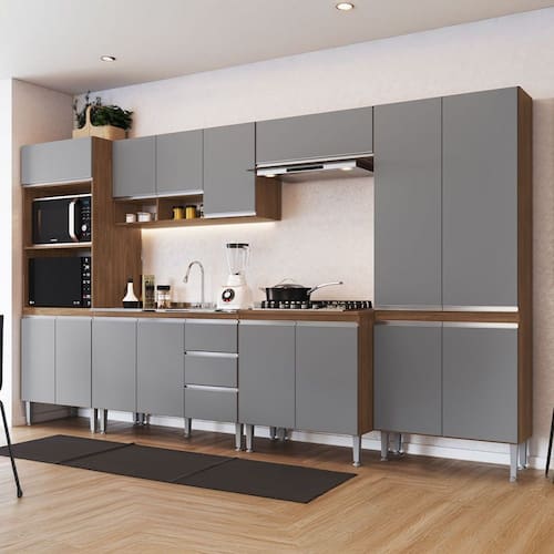 O(a) Armário de Cozinha Thalia 15 Portas 3 Gavetas Freijó/Cinza - Pnr Móveis é produzido em MDP na escala de brilho Semi-Brilho, e possui um grau de dificuldade de montagem: Médio.