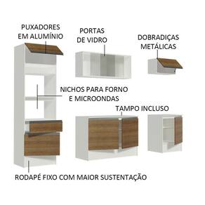 A Cozinha Completa Topazio é uma cozinha pensada nos mínimos detalhes. Muito atual, combina com ambientes modernos, retrô ou coloridos. Seu aéreo em vidro agrega beleza e sofisticação.