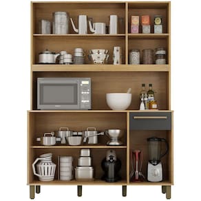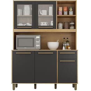 Descrição: Que tal a Cozinha Valdemóveis Rubi? Nada melhor do que ter uma cozinha funcional que facilite a rotina diária, não é verdade? é exatamente isso que a Cozinha Rubi vai levar para a sua casa! Dispondo de cinco portas, uma gaveta e nichos, ela é perfeita para acomodar os utensílios que você usa para preparar suas receitas especiais, bem como os potes de mantimentos e as louças. Além disso, o móvel também possui tampo fechado, que é ideal para acomodar algum eletrodoméstico pequeno, como micro-ondas, liquidificador e cafeteira, e até mesmo para servir de apoio na hora de picar e temperar os alimentos. Com design tradicional, a coloração sóbria e o acabamento amadeirado se juntam em um combo primoroso para embelezar o seu cantinho gourmet, e os vidros trazem todo um charme a mais. Só benefícios para o seu lar-style.