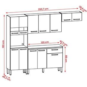 Marca: Kit's Paraná | Altura: 193 cm | Largura: 250,7 cm | Comprimento: 42,3 cm | Altura Embalado: 23,1 | Largura Embalado: 67,7 | Comprimento Embalado: 180,3 | Peso: 87,2 kg | Peso Embalado: 87,2 | Estado de Origem: SP | Material: MDP de 12 mm, MDP de 15 mm, vidro de 03 mm | Modelo: Armário Versalhes 12 Portas 1 Gaveta | Descrição do Tamanho: 193 x 250,7 x 42,3 cm | Garantia em meses: 03 meses de garantia para defeitos de fabricação | Precisa de montagem?: Sim | Tipo de móveis de cozinha: Cozinha completa | É kit: Sim | Altura do armário: 193 cm | Materiais do corpo: MDP de 12 mm, MDP de 15 mm, vidro de 03 mm | Fonte do produto: DoceLar | Modelo detalhado: Armário Versalhes 12 Portas 1 Gaveta | Profundidade do balcão: 42,3 cm | Material das corrediças: metálicas | Com prateleiras: Sim | Material das alças: plástico | Quantidade de portas: 12 | Estilo: Moderno | Altura do balcão: 86 cm | Profundidade do armário: 28,6 cm | Quantidade de gavetas: 1 | Materiais das portas: MDP | Quantidade de peças: 1 | Linha: Cozinha | Largura do balcão: 120 cm | Largura do armário: 250,7 cm | Inclui tampo: Sim | Condição do item: | Código ANVISA (32481): Não se aplica | Código da Homologação ANATEL (32495): Não se aplica | Código INMETRO (32486): Não se aplica | Código MAPA (32485): Não se aplica | Baterias são necessárias?: Não | Certificação de teste externa: Não aplicável | Componentes incluídos (included_components): armário, balcão e manual de montagem | da peça (part_number): 27184 | de caixas (number_of_boxes): 3 | do Modelo (model_number): 27184 | Principais Características do Produto (bullet_piont#0): estrutura em MDP de 12 mm, MDP de 15 mm, vidro de 03 mm | Principais Características do Produto (bullet_piont#1): corrediças metálicas | Principais Características do Produto (bullet_piont#2): suporta até 112 kg distribuidos | Quantidade de Itens (number_of_items): 1 | Preço sugerido sem impostos: 0 | É frágil?: Sim Cor: Freijo/Gris