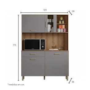 O Viena Plus 120cm oferece um armazenamento inteligente com sua combinação de compartimentos fechados, mantendo sua cozinha organizada e seus itens essenciais sempre à mão. Fabricado com estrutura e acabamento em amadeirado de alta qualidade, o Viena Plus garante durabilidade e resistência. Seus puxadores discretos e modernos complementam o visual sofisticado, adicionando um toque de charme ao ambiente.