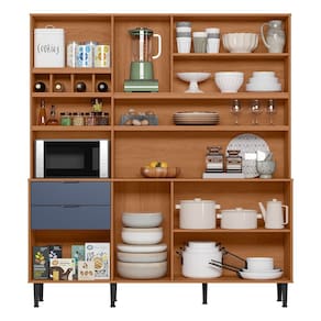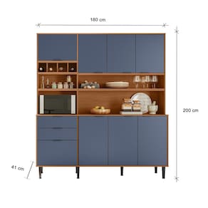Armário de Cozinha Viena 7 Portas 3 Gavetas e Adega para 4 Garrafas Jequitibá/Azul Lord - Lukaliam