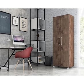 ARMARIO DE ESCRITORIO | Com 2 portas, prateleiras internas, dobradiças metálicas, puxadores cromados e rodízios faz do armário de escritório um móvel com design sofisticado, é própria para pessoas exigentes com organização, sendo feita em MDP de 15mm nas portas e MDP 12mm para prateleiras, laterais e tampos. Suporta pesos de até 8kg em suas prateleiras e 15kg no tampo suficiente para acomodar diversos materiais de escritório. Seu maior diferencial são os rodízios que facilitam a movimentação do produto para limpeza.