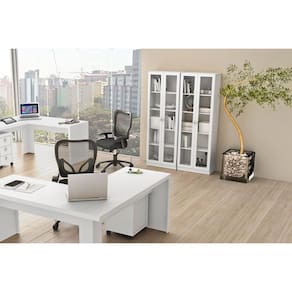 Armário de Escritório ME4115 c/ 2 Portas c/ Vidro Nogal - Tecno Mobili