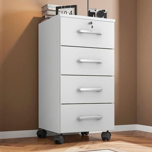 MDPGaveteiro Gávea, produto Versátil Compacto ideal para pequenos espaços, Pintura Textura, 4 Gavetas sendo 01 com Chave e com Rodízios para facilitar manuseio.