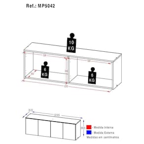 Altura: 39,5 cm | Largura: 123,5 cm | Profundidade: 31,5 cm
