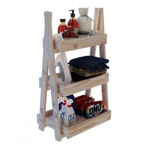 Estante arara com prateleiras e estrutura em madeira maciça de Pinus.