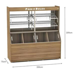 Características Técnicas: Prateleiras inclinadas tipo aramado, estruturas com suportes tipo mão francesa em aço galvanizado, com regulagem de altura Uso indicado: padarias, confeitarias, mercados, empórios, lanchonetes e estabelecimentos comerciais de panificação Espelho traseiro 3mm Pés com regulagem de altura Portas de correr em vidro temperado Gabinetes estruturados em MDF laminado 15mm