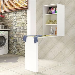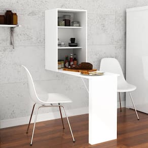 Armário de Parede Suspenso com Mesa e Prateleiras Articulável AM3106 Branco Tecnomobili