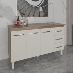 Espaço e um bom design são itens essenciais na hora de escolher um móvel para a sua casa certo? Neste caso o Kit Balcão Com Tampo Deise 150 cm é a escolha certa! Além de bonito, ele oferece um excelente espaço para armazenar os seus itens, além de possuir 3 gavetas para os itens de menor porte. Produzido em MDP, ele é bonito resistente e vai te surpreender, adquira já o seu!