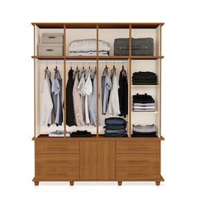 Esse Armário conta com um design clássico e simples, somando na decoração de seu quarto ou closet, com o espaço amplo para você se organizar. Ele conta 4 portas maiores, 6 gavetas, 2 prateleiras internas, varal para cabides, armário inferior com 1 porta e armário superior com 4 portas.