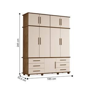 Esse Armário conta com um design clássico e simples, somando na decoração de seu quarto ou closet, com o espaço amplo para você se organizar. Ele conta 4 portas maiores, 6 gavetas, 2 prateleiras internas, varal para cabides, armário inferior com 1 porta e armário superior com 4 portas.
