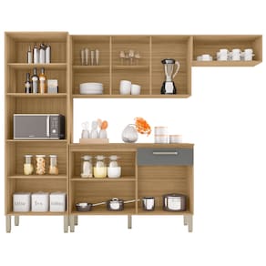 O Armário possui 12 portas sendo duas com vidro reflecta e 1 gaveta destaca-se por sua praticidade e eficiência de uso, podendo ser utilizada como complemento de cozinha.