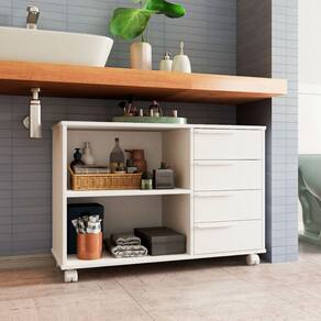 Conteúdo da Embalagem: 01 Armário em MDP com 1 Prateleira 4 Gavetas e 4 Pés com Rodízio BRV Móveis