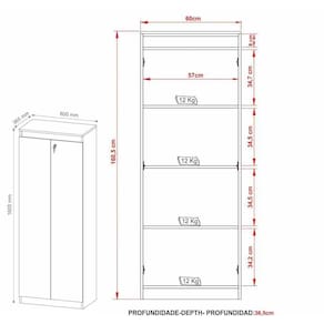 Dimensões do produto montado: Altura: 160,5cm | Largura: 60cm | Profundidade: 36,5cm *Você pode consultar as medidas internas na imagem técnica do produto. *As cores do produto podem sofrer variações de tonalidade de acordo com as configurações do seu dispositivo.