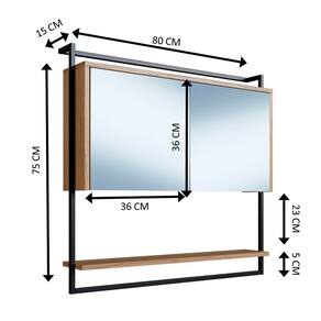 Características adicionais: 2 Portas com espelho, toalheiro, 1 prateleira, 3 nichos, dobradiças metálicas.