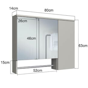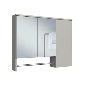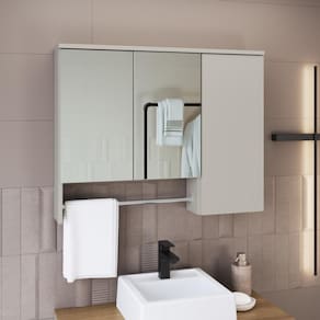 A espelheira para banheiro ES9000 é produzida em MDP 15mm e acabamento FF fosco. Possui 3 prateleiras internas que suportam 2kgs cada, 3 portas de bater com dobradiça metálica, 2 espelhos de 3mm colados e 1 toalheiro em alumínio cromado. Produto suporta até 10kgs. Conteúdo da embalagem: móvel, ferragens e manual de montagem. Necessita fixação na parede e acompanha os parafusos para a fixação. A fixação das peças e/ou acessórios é feita por parafusos e cavilhas. Para uma limpeza mais efetiva, utilizar apenas pano macio umedecido e sabão neutro. Não utilizar produtos abrasivos. Garantia de 03 meses contra defeitos de fabricação. Medidas do produto (AxLxP): 63x80x14cm. Peso do produto: 13,05kgs. Marca: Não Informado