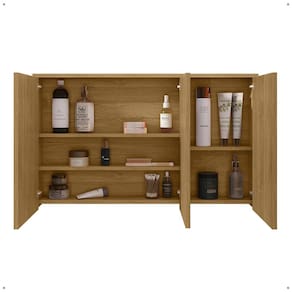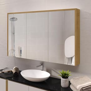 Armário Espelheira Banheiro Trindade 3 Portas Com Amortecedor Madeirada Este armário de banheiro possui três portas com espelhos, proporcionando uma ampla área reflexiva que ajuda na rotina diária. As portas são equipadas com amortecedores, garantindo um fechamento suave e silencioso, prevenindo batidas e aumentando a durabilidade do móvel. Além de funcional, o design espelhado adiciona um toque moderno e elegante ao ambiente do banheiro.