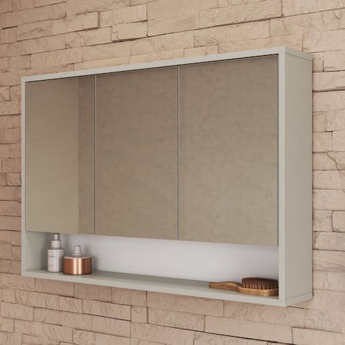 Conheça o armário aéreo para banheiros com espelhos Art In Móveis, desenvolvido para otimizar o espaço e guardar pertences. Aproveite! Este produto foi produzido em excelente material MDP de madeira reflorestada ecologicamente correta e com acabamento Finish Foil Acetinado, que garante maior resistência e qualidade em seu móvel. A essência de criar soluções que trazem mais conforto sua vida. Esse é o grande diferencial dos produtos Art In Móveis. Cada nova ideia é uma mistura de criatividade, funcionalidade e muita dedicação. Acabamento da Porta: Finish Foil Acabamento da Prateleira: Finish Foil Altura do Espelho: 45 cm Ambiente Principal: Banheiro codigo_ean: 7900288277787 Complexidade da Montagem: Média: pode ser montado por mais de uma pessoa e/ou necessite de maior conhecimento para montagem Composição: 100% MDP Cor: Arenas Cor do Produto: Arenas Cor Flex: Não Cor Interna: Bege Escala de Brilho: Fosco Espessura do Espelho: 3 mm Espessura do Material da Estrutura: 15 mm Formato do Espelho: Retangular Formato Espelheira: Retangular Itens Inclusos: 1 Armário, Kit Ferragens e Manual de Montagem Largura do Espelho: 28 cm Linha ou Coleção: Bari Manual de Montagem e Instalação: https://product-hub-prd.madeiramadeira.com.br/184461045/documents/e68cd7fb-4569-4e91-8c00-cc414c4488773297421522517616945688033.pdf Marca: Art in Móveis Material da Porta: MDP Material da Prateleira: MDP Material Principal: MDP Montagem Flex: Não Necessita Montagem: Sim Origem do Produto: Nacional Peso: 15 kg Peso Máximo por Prateleira: 5 kg Possui Espelho: 03 Espelhos com Tamanhos Iguais Possui iluminação: Não Possui Portas: 03 Possui Prateleiras: 04 Possui Toalheiro: Não Possui Tomadas: Não Recomendações de Uso, Manutenção e Limpeza: Para a limpeza do móvel utilizar pano levemente umedecido Sistema de Montagem: Parafusos, cavilhas e minifix Tipo de Dobradiça/Corrediça da Porta: Metálica Tipo de Fixação do Espelho: Silicone Tipo de Porta: Bater Tipo de Puxador da Porta: Não Possui