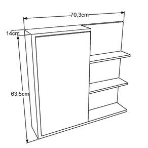 O armário espelheira ES2001 é produzido em MDP 15mm e acabamento FF fosco. Possui 1 porta de bater com espelho 3mm colado, dobradiça metálica, 2 prateleira internas e 2 prateleiras externas. Produto suporta até 10kgs. Conteúdo da embalagem: móvel, ferragens e manual de montagem. Necessita fixação na parede e acompanha os parafusos para a fixação. A fixação das peças e/ou acessórios é feita por parafusos e cavilhas. Para uma limpeza mais efetiva, utilizar apenas pano macio umedecido e sabão neutro. Não utilizar produtos abrasivos. Garantia de 03 meses contra defeitos de fabricação. Medidas do produto (AxLxP): 63,5x70,3x14cm. Peso do produto: 10,72kgs.