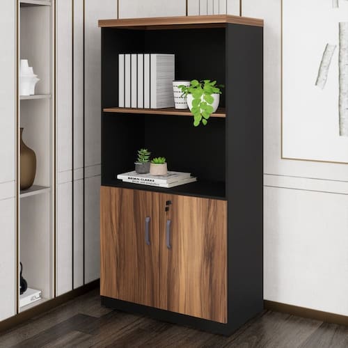 do ar e/ ou dos substratos inicia a sua reticulação, tornando-se um adesivo Acabamento da Porta: BP Acabamento da Prateleira: BP Ambiente Principal: Escritório Complexidade da Montagem: Média: pode ser montado por mais de uma pessoa e/ou necessite de maior conhecimento para montagem Cor: Marrom/Preto Cor do Produto: Marrom/Preto Escala de Brilho: Fosco Escala de Brilho da Porta: Fosco Escala de Brilho da Prateleira: Fosco Espessura do Tampo: 40 mm Itens Inclusos: Um armário estante Manual de Montagem e Instalação: https://product-hub-prd.madeiramadeira.com.br/909413/documents/bc6998f6-2dc6-4028-862a-6977a7ba05d91971768159817162276618415.pdf Material da Porta: MDP Material da Prateleira: MDP Material Principal: MDP Necessita Montagem: Sim Origem do Produto: Nacional Peso: 48,8 kg Peso Máximo por Prateleira: 15 kg Possui Espelho: Não Possui Nicho: Sim Possui Pés: Não Possui Portas: 02 Possui Prateleiras: 03 Recomendações de Uso, Manutenção e Limpeza: Antes de limpar recomenda-se que seja retirada toda a poeira com um espanador ou flanela seca para evitar riscos na superfície, após utilize um pano umido em água, macio e limpo. Sapatas Niveladoras: Sim Sistema de Montagem: Parafusos e Cavilhas. Suporta Até (kg): 75 kg Tipo de Dobradiça/Corrediça da Porta: Metálica Tipo de Puxador da Porta: Externo