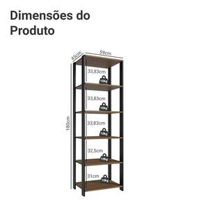 Nome do Simples no Fornecedor: Armário Estante Multiuso Organizador 5 Prateleiras 59cm Rustic/Preto Madesa