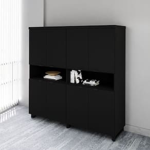 Altura: 160 cm Acabamento da Porta: BP Acabamento da Prateleira: BP Acabamento dos Pés: Pintura Ambiente Principal: Escritório Armário Suspenso: Não codigo_ean: 7900288244048 Complexidade da Montagem: Média: pode ser montado por mais de uma pessoa e/ou necessite de maior conhecimento para montagem Cor: Preto Cor do Produto: Preto Cor Flex: Não Cor Interna: Preto Escala de Brilho: Fosco Escala de Brilho da Porta: Fosco Escala de Brilho da Prateleira: Fosco Espessura do Tampo: 40 mm Formato do Armário: Retangular Itens Inclusos: 1 Armário Alto, Kit Ferragens e Manual da Montagem. Linha ou Coleção: Coleção Corporate F5 Office Localização do Nicho: Nicho em Cima Manual de Montagem e Instalação: https://cdn2.madeiramadeira.com.br/atributo/casa-lar-shop-ltda/3250186-6595-17592490054235.pdf Marca: F5 Office Material da Porta: Metal Material da Prateleira: MDP Material do Puxador da Porta: Metal Material dos Pés: Metal Material Principal: MDP Montagem Flex: Não, o produto só pode ser montado conforme a imagem. Necessita Montagem: Sim Orientação do Armário: Vertical Origem do Produto: Nacional Pés Reguláveis: Sim Peso: 79 kg Peso Máximo por Prateleira: 10 kg Possui Espelho: Não Possui Mesa Retrátil: Não Possui Nicho: Sim Possui Pés: 03 Possui Portas: 08 Possui Prateleiras: 04 Quantidade de Armários: 1 Recomendações de Uso, Manutenção e Limpeza: Para uma limpeza mais efetiva, utilizar apenas pano macio e sabão neutro. Não utilizar produtos abrasivos. Sapatas Niveladoras: Sim Sistema de Montagem: Parafusos e buchas metálicas. Suporta Até (kg): 80 kg Tamanho do Armário: Alto (Acima de 150cm) Tipo de Armário: Semi-Fechado Tipo de Dobradiça/Corrediça da Porta: Metálica Tipo de Puxador da Porta: Externo Marca: Não Informado