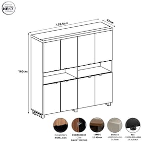 O Armário Estante F5 Office é funcional e versátil, ideal para organizar documentos, materiais e objetos. Com 8 portas e 2 nichos abertos, une praticidade, durabilidade e design moderno para escritórios, home offices e ambientes corporativos.