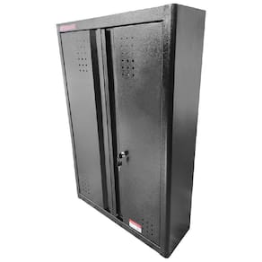 O Armário Fechado Para Ferramentas Com Prateleira e Ganchos Preto NA-2 - Nocram, é indicado para fixação na parede e possuem ganchos e suportes fixos que facilitam na organização das ferramentas e componentes.