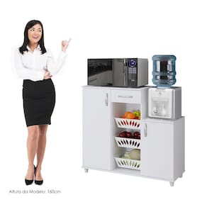 Com um design encantador, o Armário Recife traz charme e elegância a qualquer ambiente. Ele possui uma gaveta espaçosa, duas portas com prateleiras internas, um tampo resistente de 15 mm que acomoda com segurança um micro-ondas, além de espaço para bebedouro de até 20 litros. Também conta com três cestas de PVC para organizar frutas e legumes, garantindo maior durabilidade. Ideal para pequenos espaços, mantém seus utensílios sempre organizados. Produzido com a linha MDP Perfect, combina sustentabilidade e inovação tecnológica, proporcionando durabilidade e fácil limpeza. Sua pintura UV é resistente, de fácil manutenção, e ecologicamente correta, pois utiliza madeira de reflorestamento e contribui para a preservação ambiental.