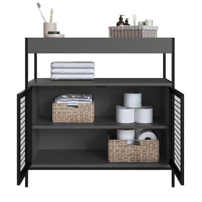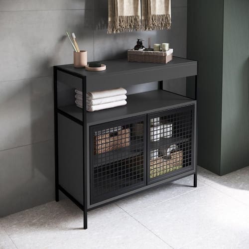 Ármario Gabinete para Banheiro Industrial com Portas de Metal sem Cuba Grafite - Design aramado: charme e personalidade em cada detalhe.