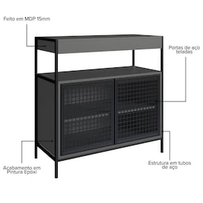 Com 80cm de largura, sua estrutura em aço com pintura epóxi garante durabilidade, enquanto as portas em tela metálica adicionam um toque de estilo único.