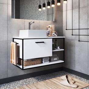 Garantia: 90 dias / Peso: 20,4kgs / Cor predominante: Branco / Referência: 7898270101397; Dimensões: 80cm (C) x 41,5cm (L) x 46cm (A); Material: metal, MDP e FF fosco; Conteúdo da embalagem: móvel, ferragens e manual de montagem. Limpeza e cuidados: - Não utilizar produtos químicos ou abrasivos na limpeza; - Para a limpeza do móvel utilizar flanela seca. Detalhes do produto: - É de responsabilidade do montador seguir as instruções do Manual de Montagem, que são fundamentais para garantir a estrutura do móvel; - Produto enviado desmontado, a montagem é simples e pode ser realizada facilmente com a ajuda do manual de montagem; - A fixação das peças e/ou acessórios é feita por parafusos e cavilhas; - Garantia de 03 meses contra defeitos de fabricação; - Produto acompanha cuba em marmorite; - Produto suporta até 15kgs.