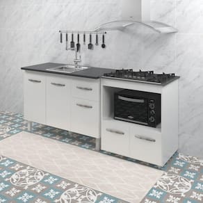 Boa parte do nosso tempo passamos na cozinha né? Por isto ela precisa ser um ambiente bonito e agradável! Pensando nisso, apresentamos o kit Balcão para Pia 118 cm Anitta com Balcão para Cooktop 5 bocas e Forno Elétrico Elisa da Moblis Móveis, um kit com a sua cara! Ele é bonito, moderno, combina com cada detalhe da sua cozinha e vai te surpreender, adquira já o seu!Características Balcão de Pia Anitta 118 cm:Altura:83,5 cm (Com os Pés).Altura sem os pés: 67 cm.Largura: 118 cm (Padrão para pia de 120 cm).Profundidade: 50 cm.Material: MDP (madeira).Portas: 3 Portas.Gavetas: 1 Gaveta.Prateleiras: 1 Prateleira.Puxadores: 4 puxadores plásticos cromadosPés: 5 pés reguláveis de plástico.Altura dos pés:16,5 cmRegulagem dos pés: Somente para nivelamento, (Chega no máximo a 18 cm).Corrediças: Metálicas.Acompanha tampo: NãoCaracterísticas Balcão Para Cooktop Elisa 5 Bocas:Altura: 85,5 cm (Altura do produto com os pés e com o tampo)Altura sem os pés: 80,5 cmLargura: 75 cmProfundidade: 50 cm*A largura 75 cm corresponde ao tampo do balcão, sem o tampo o balcão tem 71 cm de Largura.Dimensões do Nicho (Recorte para encaixar o cooktop): 64 x 35,5 cmMaterial: MDPPortas: 2 PortasPuxadores: 2 puxadores plásticos cromadosPés: 4 pés de plástico.Altura dos pés: 5 cmRegulagem dos pés: Não tem regulagem.Acompanha tampo: Sim (Somente o Balcão de Cooktop).Características do kit montado:Largura 193 cm (lado a lado os dois balcões).Profundidade: 50 cmAltura: 85,5 cm (Altura do balcão para cooktop com tampo)*Imagem meramente ilustrativa, não acompanha objetos decorativos, é somente os dois balcões.