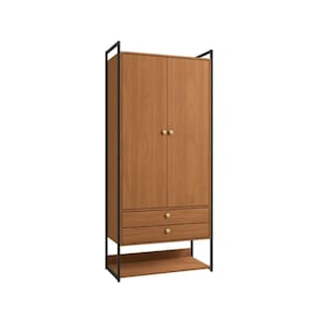 O Armário Kappesberg LI048 Canela/Preto Fosco da linha Crome Industrial combina praticidade, resistência e design sofisticado. Com dimensões de 201cm de altura, 89cm de largura e 44cm de profundidade, possui 2 portas que protegem melhor os pertences, 2 gavetas amplas de 77cm de largura por 10cm de altura cada e prateleiras para otimizar a organização. Conta ainda com cabideiro interno, ideal para roupas longas, além de prateleira inferior de 25cm perfeita para calçados. Fabricado em Metal/MDP, acabamento fosco, suporta até 7kg e é ideal para closets e dormitórios modernos.