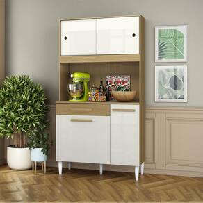 O Kit Cozinha é compacto e ótimo para seu dia a dia. Contém 04 portas, sendo 02 delas de correr trazendo um ar mais moderno e clean para o móvel, com dobradiças metálicas dando maior durabilidade e resistência ao abrir e fechar as portas, conta também com 01 gaveta ampla, para armazenamento de utensilios diversos. Sua estrutura é composta em MDP de 12mm e 15mm, ideal e reforçada, trazendo mais segurança e estabilidade. O móvel também possui puxadores em madeira oferecendo uma excelente durabilidade e sofisticação. Seu acabamento é em verniz alto-brilho e fosco que além de manter a conservação do móvel, traz o brilho constante em seu design. Este móvel chegará em sua casa separado em 01 volume.