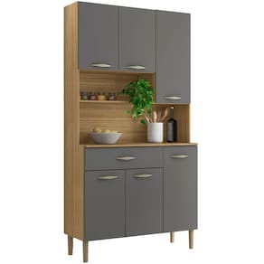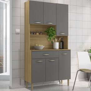 MDPO Armário Kit Cozinha é perfeito para quem busca praticidade e estilo na organização do ambiente. Produzido em MDP de 12mm e 15mm, conta com 06 portas e 01 gaveta equipadas com dobradiças e corrediças 100% metálicas. O design conta com puxadores ergonômicos e pés fixos, ambos em plástico resistente (poliestireno e polipropileno), além de nichos decorativos. Com pintura UV, o acabamento do móvel oferece maior proteção, realce nas cores e facilidade na limpeza do dia a dia. Este móvel chegará em sua casa separado em 01 volume.