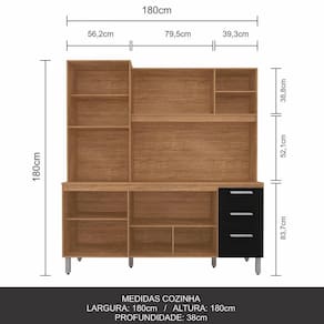 Medidas da Cozinha Montada: A:180cm | L:180cm | P:38cm